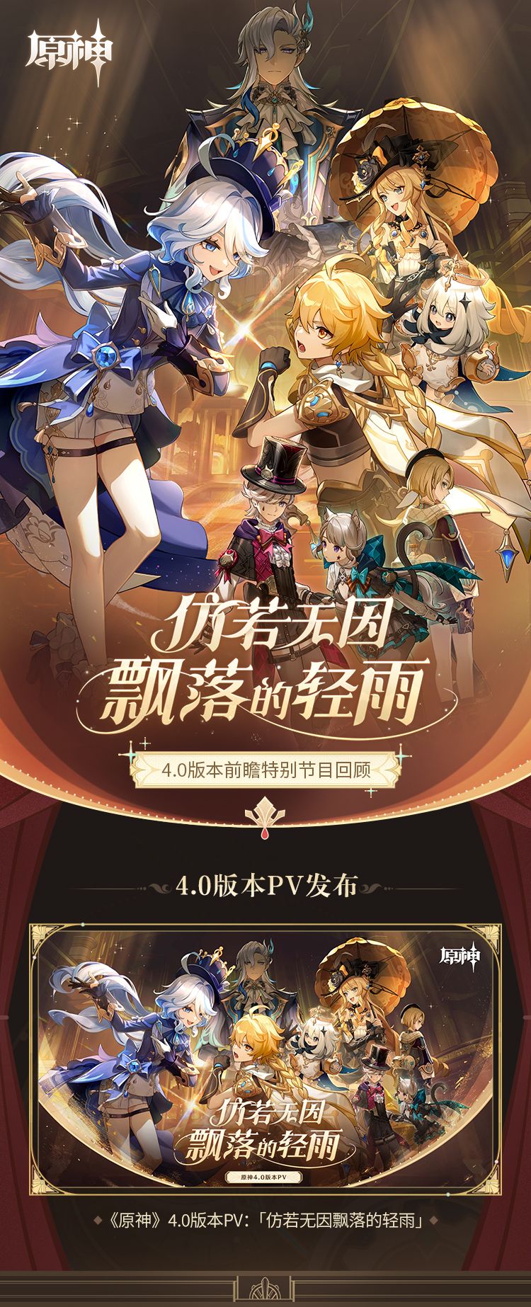 《原神》4.0版本「仿若无因飘落的轻雨」前瞻特别节目回顾长图