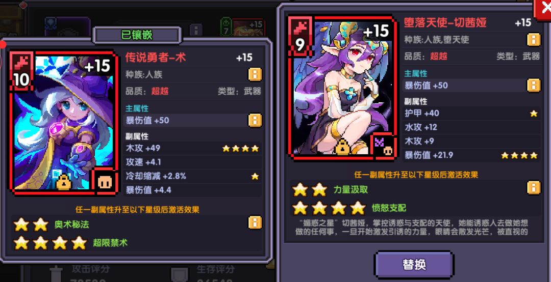 就可以把【烈焰兔灵】换成【传说勇者-术】或者【堕落天使-切茜娅】 主属性 爆伤