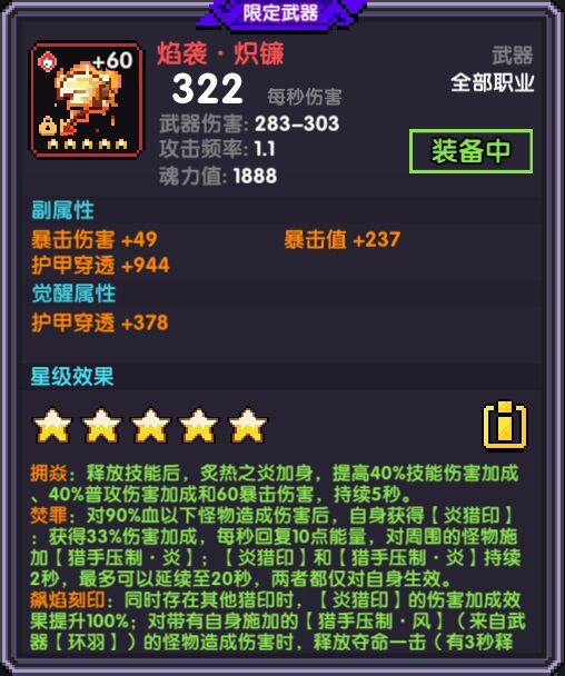 推荐属性 暴击值 护甲穿透 首领伤害