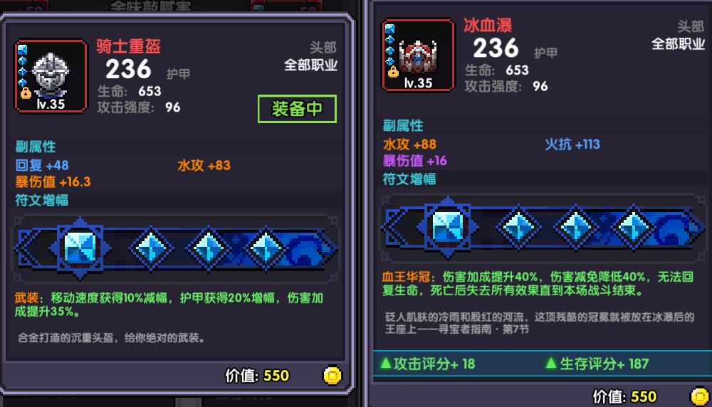 大佬可以选择有副作用但是伤害加成40%的装备比如【冰血瀑】【死魂灵】