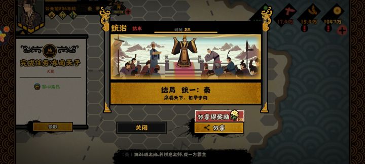 最后出使昭君,前期ai军心不够低,要靠王昭君接连出使大概两个国家,之后由于一直点晁错技能就不用出使了。累战靠伏兵可以把战损压的很低。