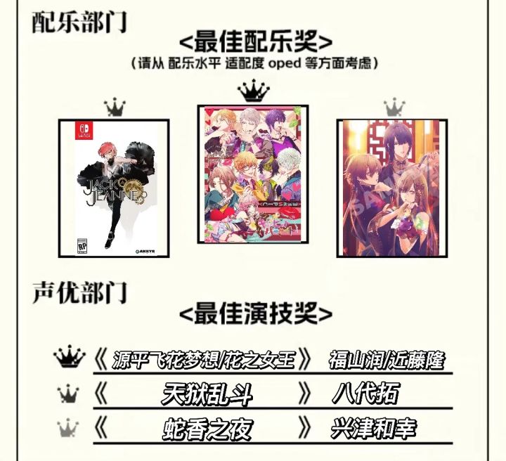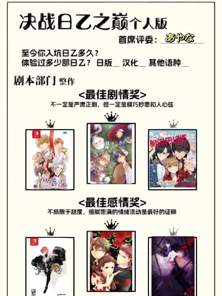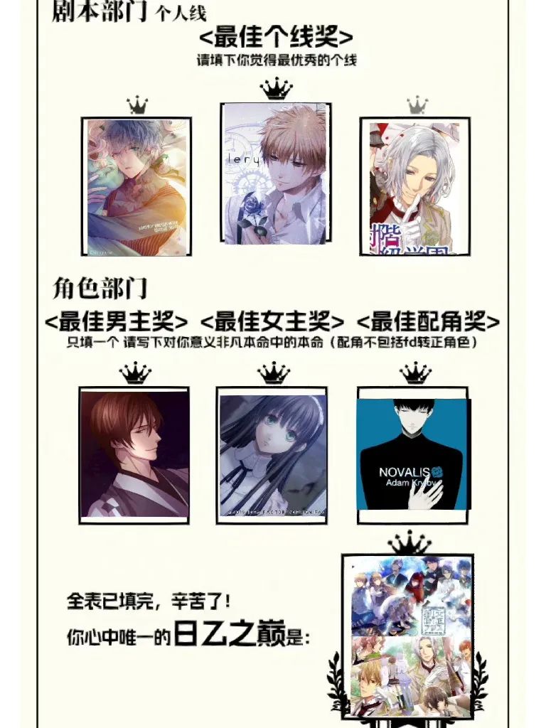 乙女游戏 日乙之巅个人喜好表 剧情画风声优