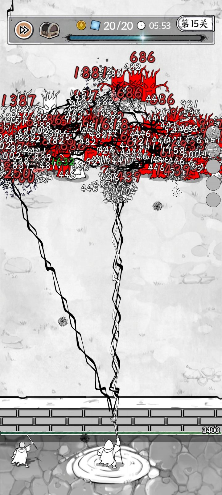这个游戏的机制在于无限推进关卡,每关的怪血和数量会越来越多,稳中求胜拿三星的办法就是海量的伤害和控制,闪电和闪电链完美的结合了大范围伤害和大范围减速,麻痹等优点,在快速清场突进怪和后排肉的方面都表现不俗。前期主要加点在于闪电的磁暴,越早把电场和多闪电点出来越好,可以点杀前期怪缓解压力,链子的话前期点到麻痹即可,优先闪电数量,中期尽量不要选其他技能,刷到了其他技能优先选冰冻和激光解场,一般只要前期点出控制,只要不是超太多关多roll几次都能三星通关