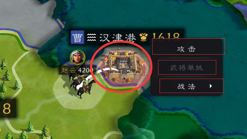 移动到敌方城池,建筑,武将旁边时选定目标可出现