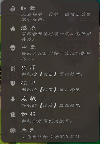 比如:投石车的范围是3格,他的攻击距离是所有兵种中最远的,一些特殊兵种的特性是无视反击的我们可以利用这个特性去攻击敌方攻击力较高的武将进行耗血,我们还可以熟练的利用各种技能和计策增加敌方的负面状态,从而增加伤害或者保护我方城池