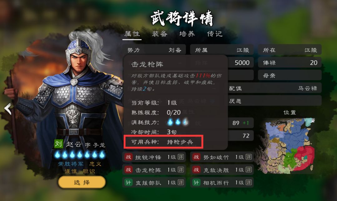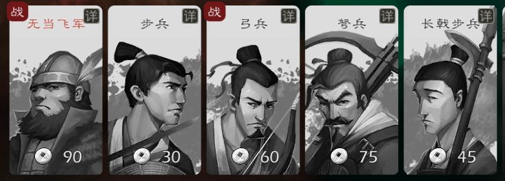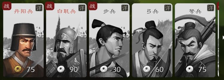 注意!兵种卡片左上角有个【战】这说明此兵种契合武将的技能,若是想查看什么兵种最契合所选武将,可点【武将详情】然后点击武将技能查看,兵种契合的武将技能越多就越合适!这个很重要,会影响你武将对敌人造成的伤害高低!
