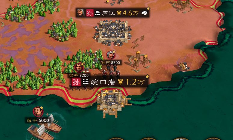 4.当有特殊地形围着的关卡和小城或者港口我们应该设置守将提高攻击和防御进行防守