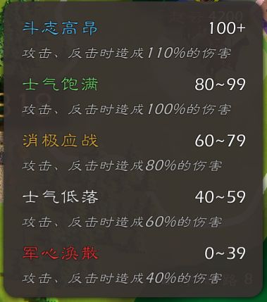 士气高昂可额外增加伤害