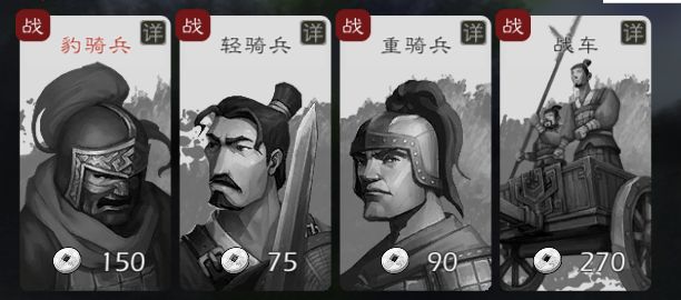 轻骑兵是所有兵种里速度最快的,通常用于调兵遣将,援助其他城池快速推进的最佳之选。但骑兵对于城池的伤害会降低50%,同时通过树林时消耗的行动力也会增加。