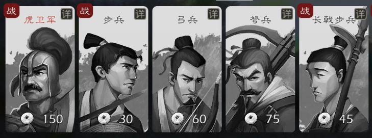 民兵在所有兵种中属性最低,也最廉价,适用于资金不足,但有足够部队的城池。
