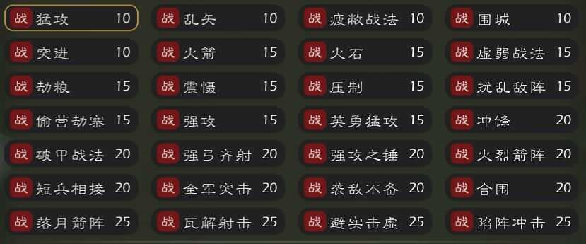 第二种是城池士兵较少的:这种没啥好说 带两骑兵两盾兵或者枪盾兵,一弓箭手直接上就行了,文士看你自己了可不带,可带出来连技能等级(技能等级最高6级)