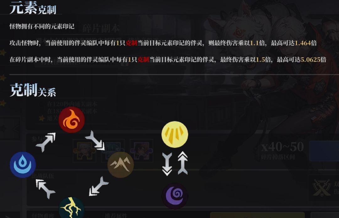 克制关系:冰克火,火克物,物克电,电克冰,光暗互克。