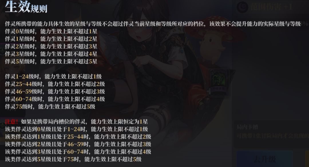 关于伴灵星级提示小经验,你卡牌星级最高只有2级,伴灵暂时就没必要升二星,伴灵探险可以把其他SSR提升到对应星级。