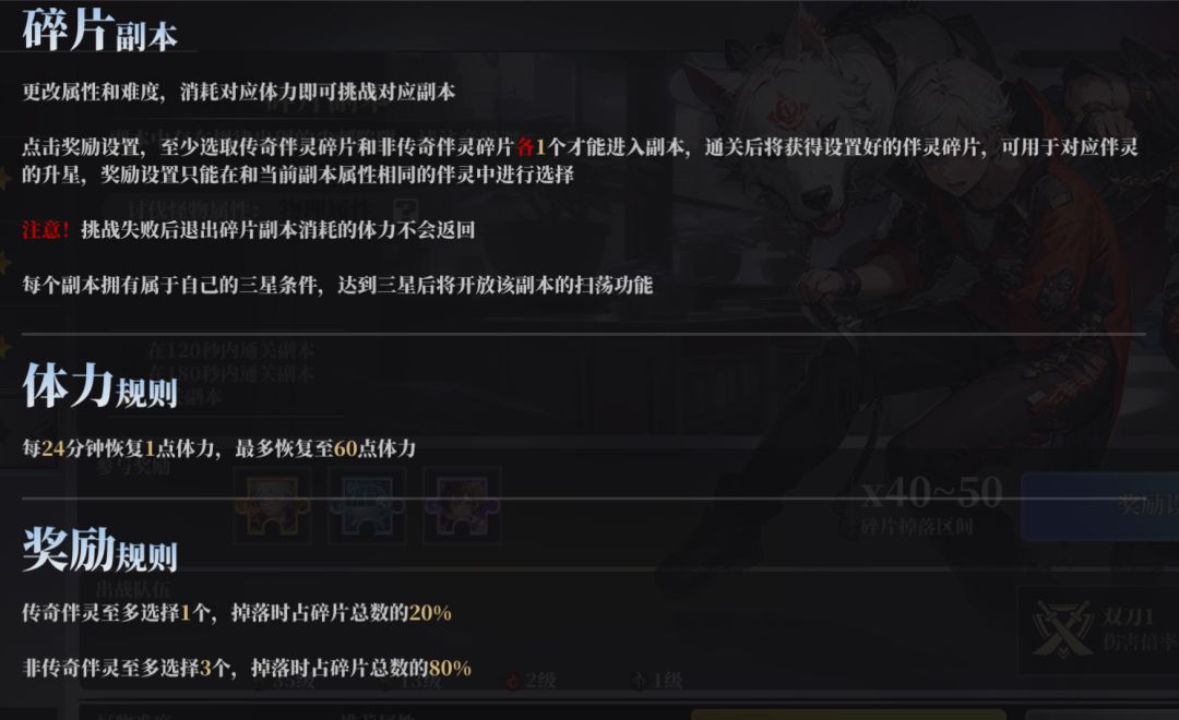 伴灵探险每24分钟获得一点体力,体力最高60点,只要通关就可以扫荡,不用辛苦去打了,只能上阵一个SSR,所以如果有克制属性的最好选克制属性,大佬无视即可。