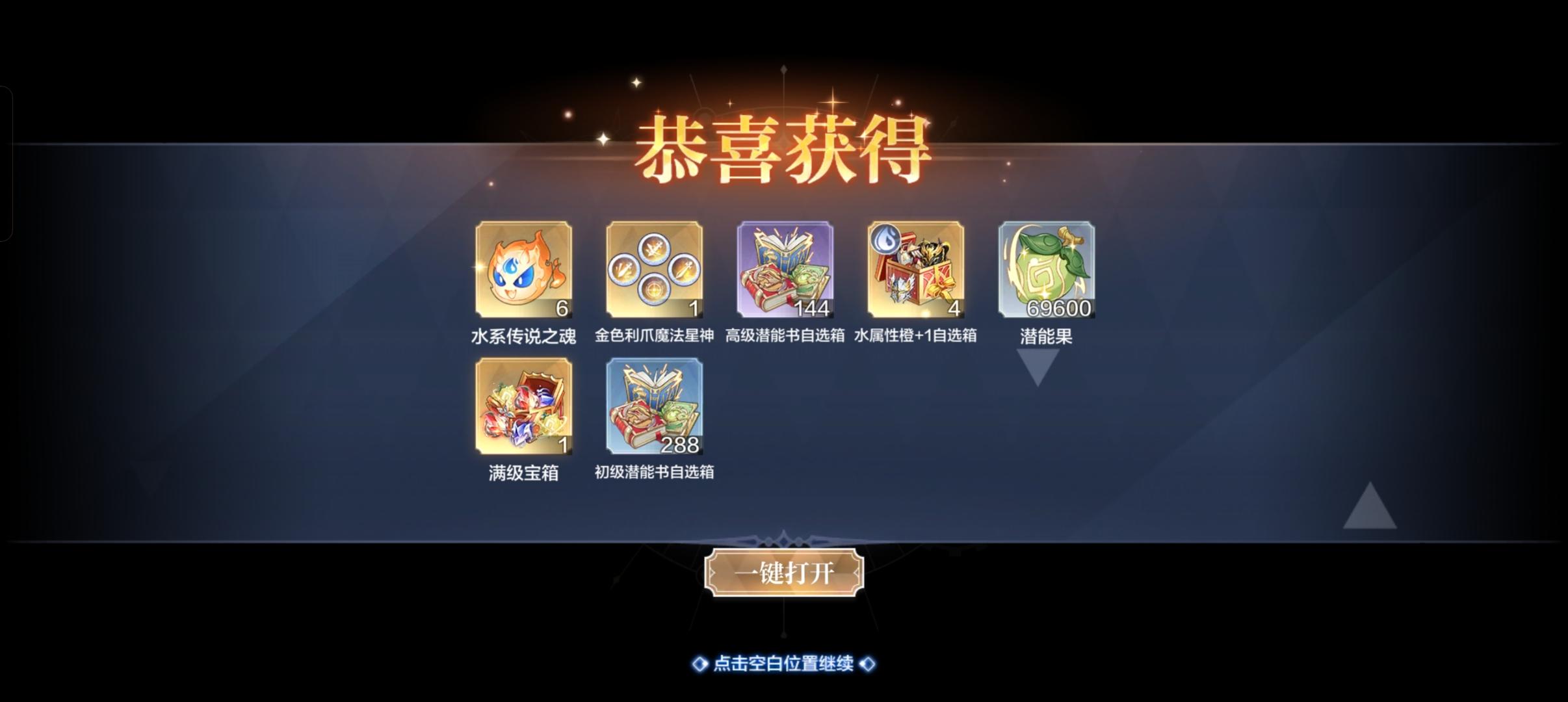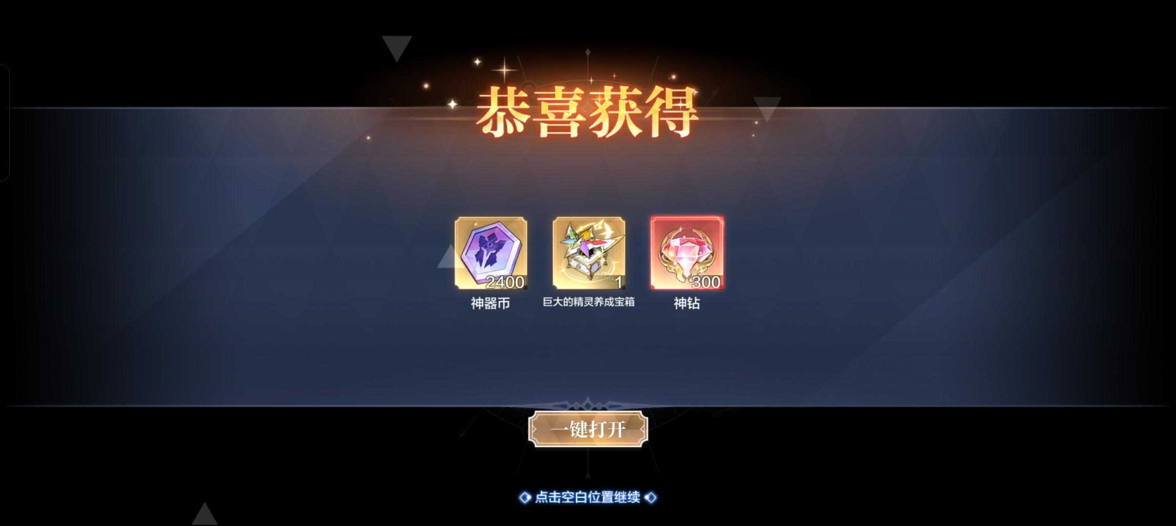 300神钻,2400神器币,水觉醒魂*6,4星神含气吞,满级材料等等