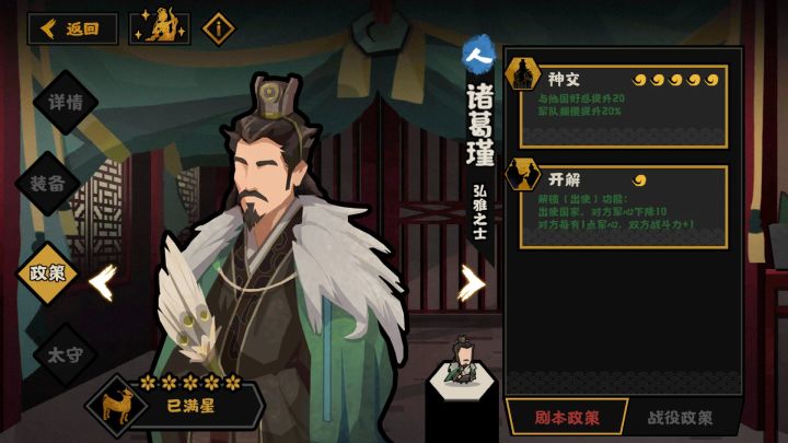 首先是周瑜,公瑾的一政策我想是不算挂机时间的,不然我每个势力打一次后面挂个几十年不就是我的了嘛。二政策水战规模虽然直播演示过水战但是还得玩过才知道先不提。三政策乐感不知道干嘛用,武将周瑜不知道他的武将技是什么也不提!