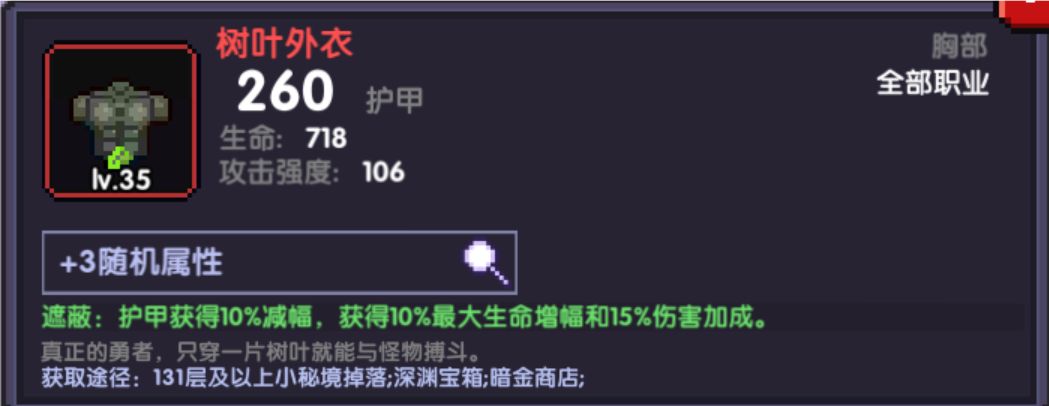 胸部:树叶外衣 属性选择:火攻/生命/暴击值