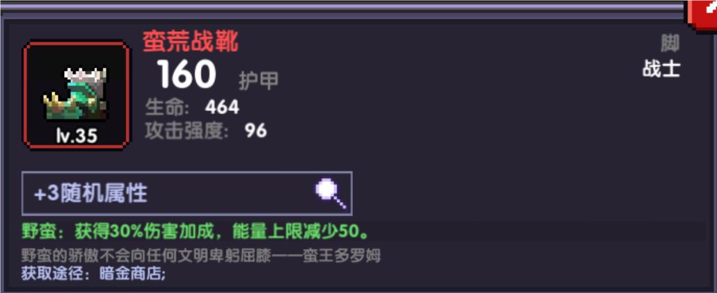 脚部:蛮荒战靴 属性选择:护穿/火攻/生命