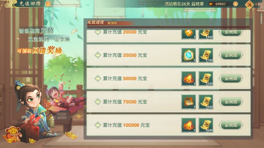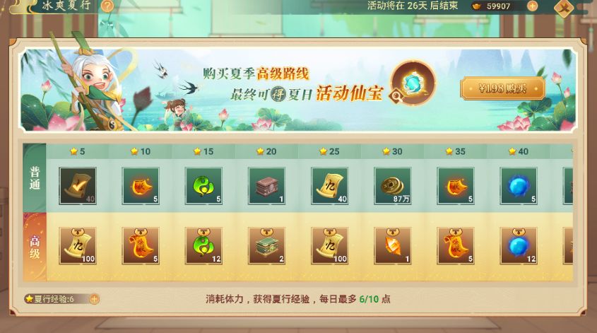 这个只要天天体力消耗完,肯定能拿满经验。白嫖的资源中我们关注一下券就好了,一共可以白嫖到400券,能拿下商店里的两组伙伴丹。仙宝肯定是不够了,不过如果肯充多100RMB,充值回馈的券加上刚好够一个仙宝,但就只能放弃伙伴丹了。当然也可以充198,这样可以直接拿一个仙宝,还可以额外获得1000的券,去商店买个仙宝,一共获取2个仙宝,2组伙伴丹也能同时拿下