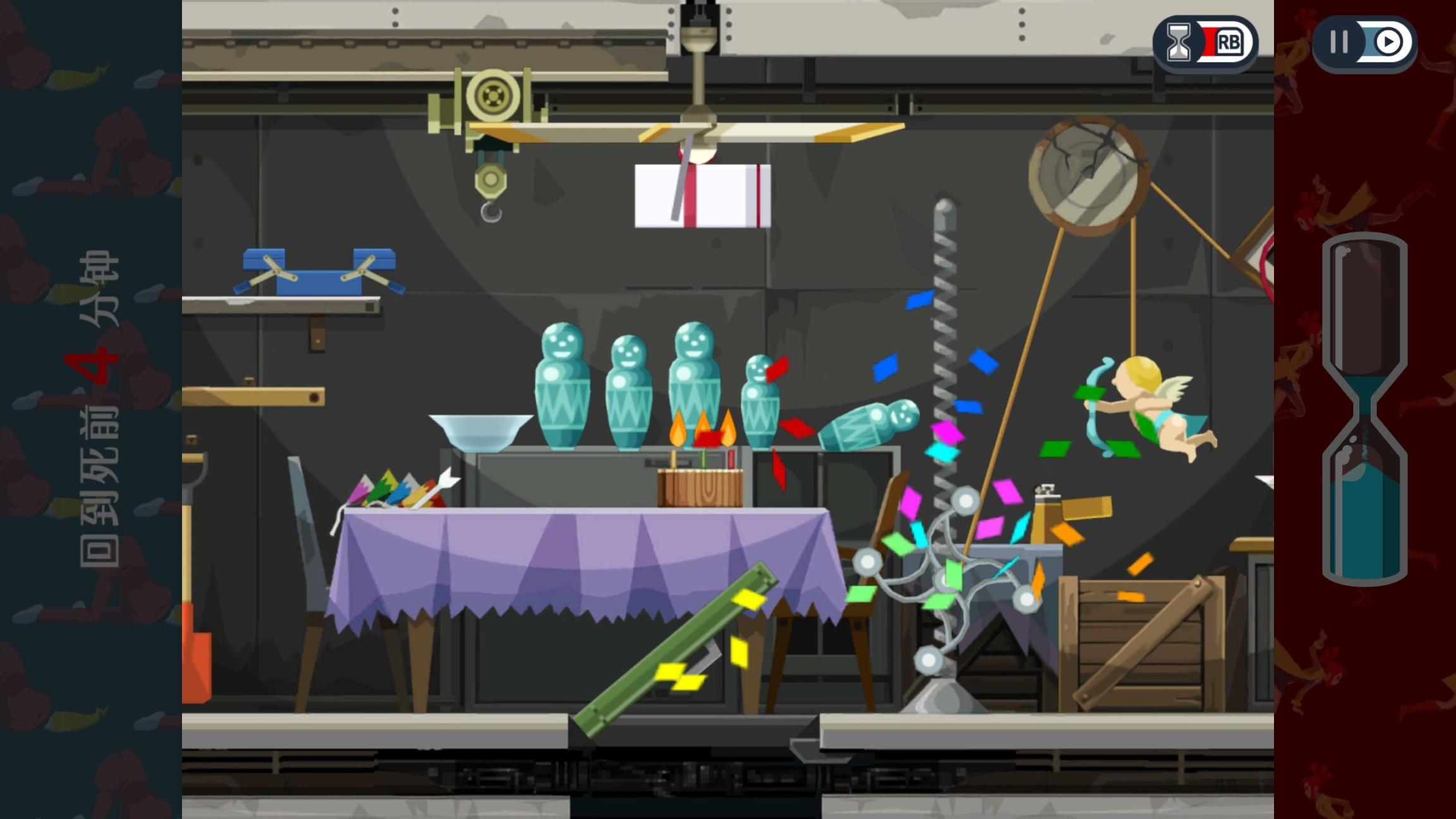 若你失败了未能成功救下这死去的生命,你也不必因此感到挫败感。因为游戏的「友好」设定,你可以在这「死前四分钟」的场景中,可以无限从头再来,或从改变命运点时再次重新开始。甚至到后面关卡难度颇高,你可以进行无限次试错,试图在每个不同物体中进行组合达成最优解来打破困局,相当考验玩家的解谜思维能力。