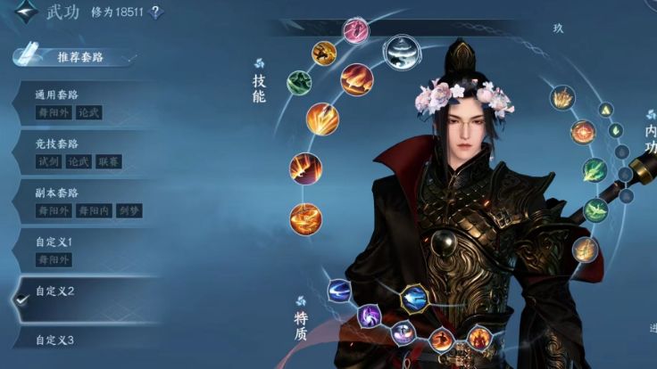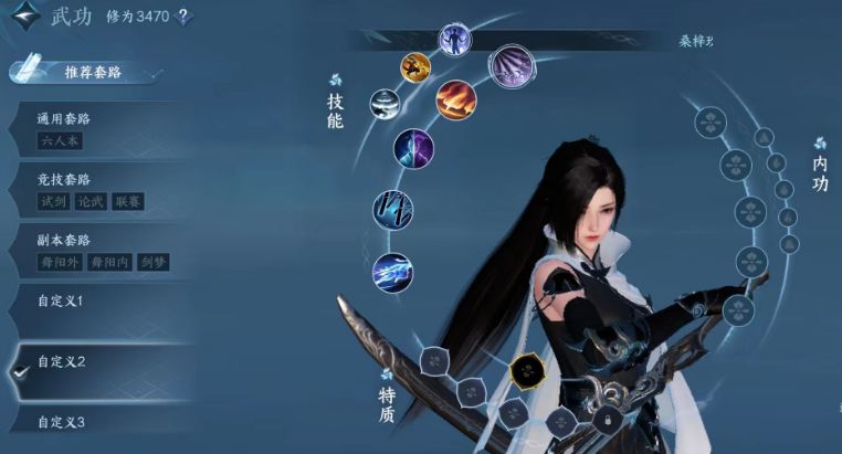 打完碎影后,就开始打琴心,这时候我们和碎梦就没事了,但是为了不躺着浪费输出,和怪贴贴容易吸引羽碎,那我们可以提前在武功-左下角武学套路-然后自定义一套技能,打完碎影快速切换一下即可!
