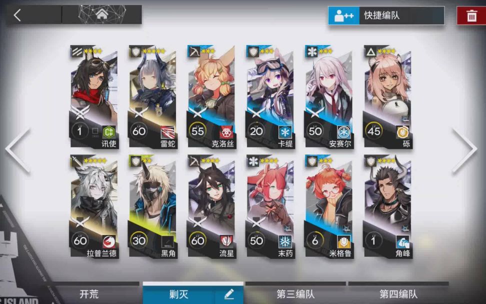 编队构成的思路就是,基于以上模板,有6星用6星,没6星就往下选,以3星为主,4星为辅,5星基本不考虑(极个别高价值的除外)。