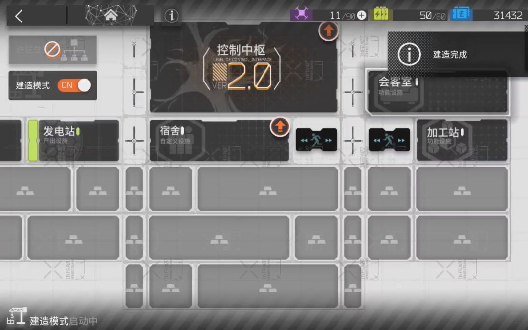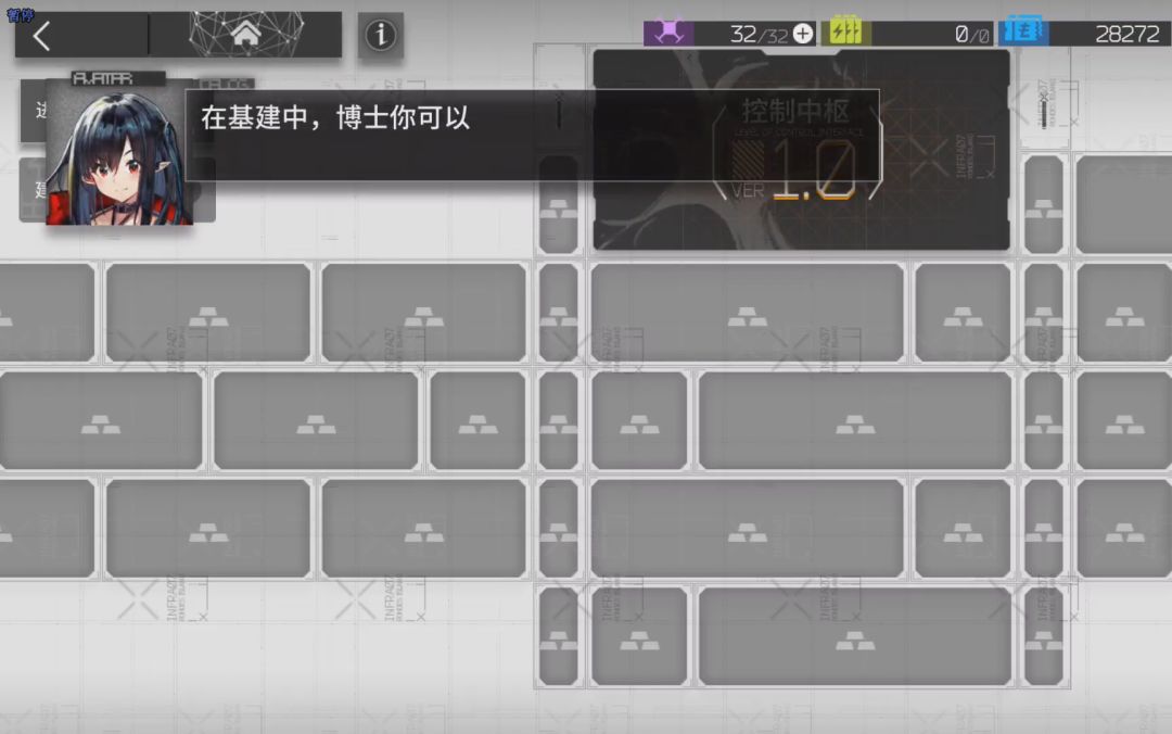 通关1-1后,升级中枢,解开会议室后才能解锁信用商店,另外记得加工站需要升级到2级,方便我们后面精二干员使用。