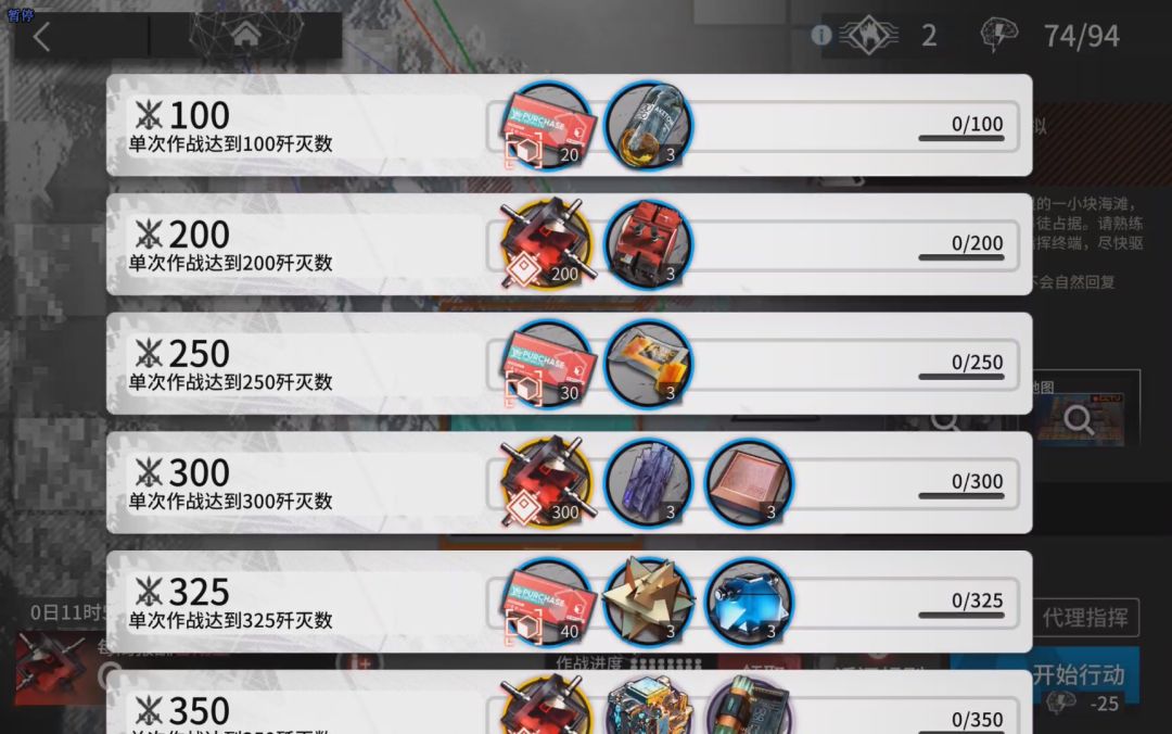 集成战略是明日方舟的肉鸽玩法,不消耗理智。目前已经出了三个主题,分别是傀影,水月,银松。除了常规的依靠自身干员练度通关攒积分换奖励之外。每个肉鸽都会有月度任务玩法,使用指定干员完成指定任务获取对应奖励,基本不需要练度,耗时也短。而当每期肉鸽完结之后,月度任务也就变为常驻,可以一次性完成所有月度任务,获取全部月度任务奖励,这就是萌新开荒养成资源最大来源之地,每个月度任务可以固定获得4个职业芯片组,15个高级经验书,3万龙门币,以及1个芯片融合剂,以及1个模组块,后面两个开荒暂时用不上,而目前已经常驻的月度任务共有16个,还有一个当期肉鸽主题的月度任务。