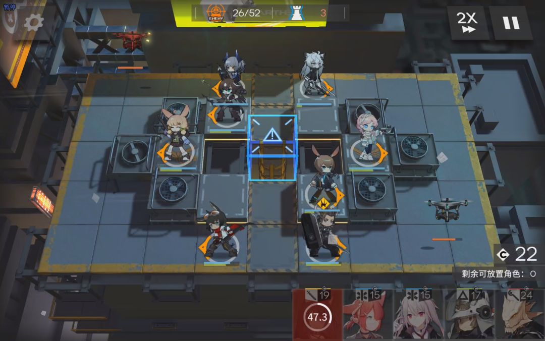 主线第二章:从第二章开始,难度就会开始攀升了,从这时就可以考虑练一些核心干员了。后面几关基本需要助战处理,因为我们这里是基本不练干员的。前面几关都比较简单,直到s2-2。有比较多的飞机,对速射就是考验了,这里如果还没有升级干员,大概是过不去的,可以借一个助战过。