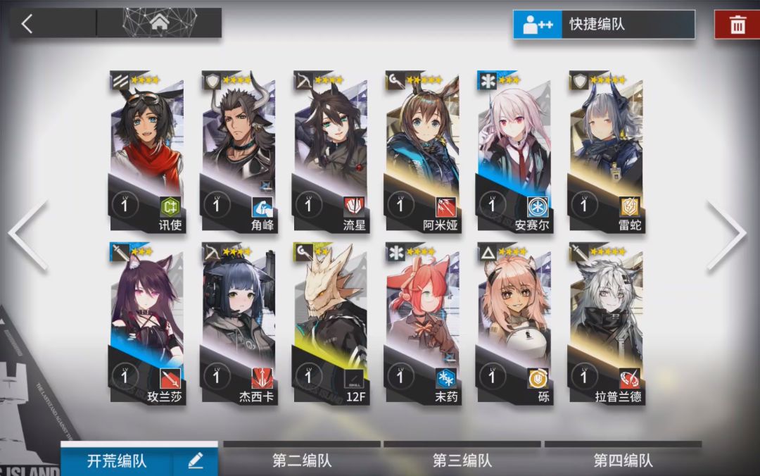 信用商店出现,会默认给100点信用,换掉讯使。讯使将作为我们首个精二的干员,十分重要。一切做完后,就可重组我们的开荒阵容了: