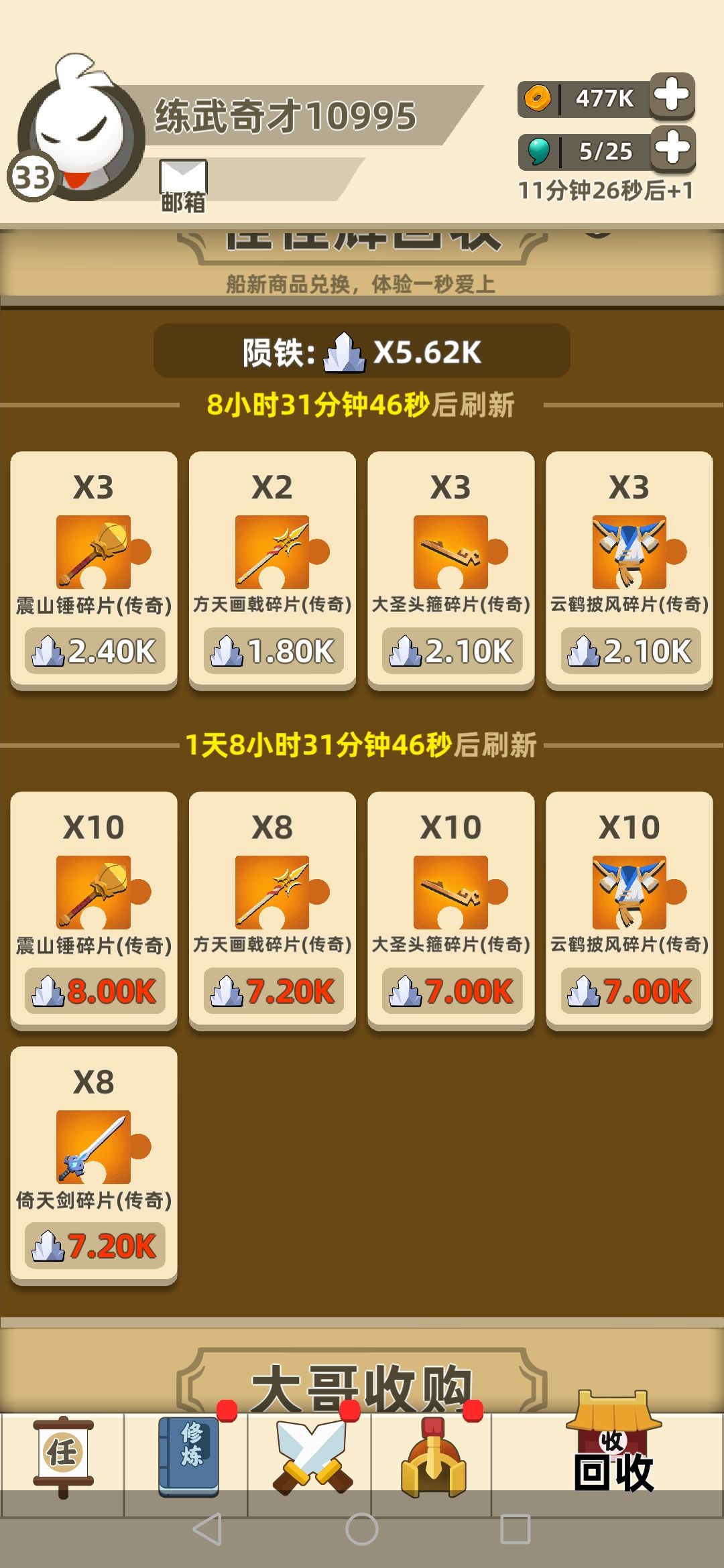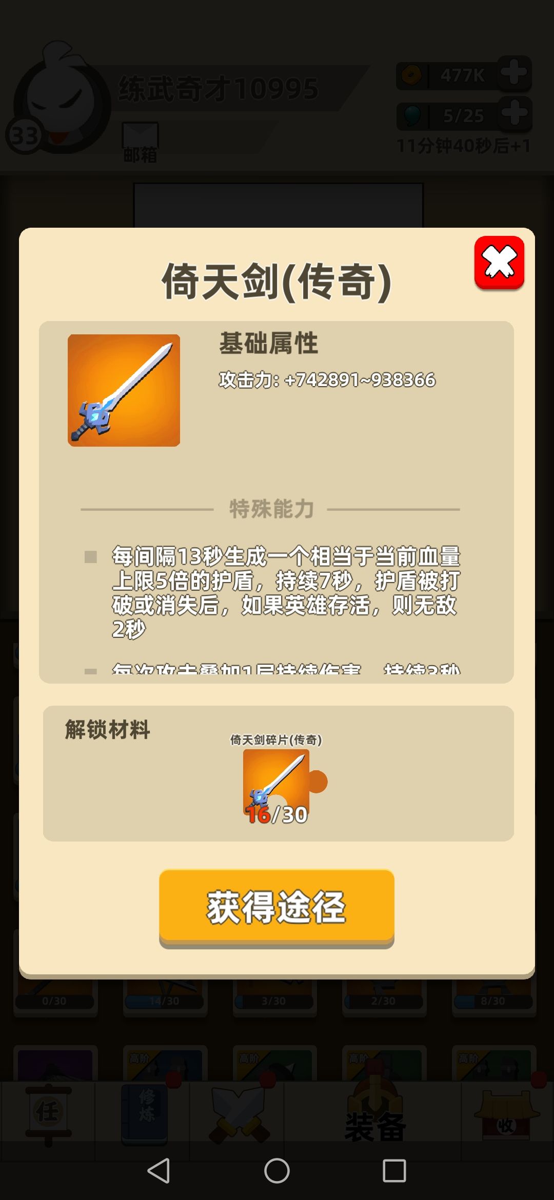 快有倚天了,如果刷六个碎片就好了。陨铁明天就够了