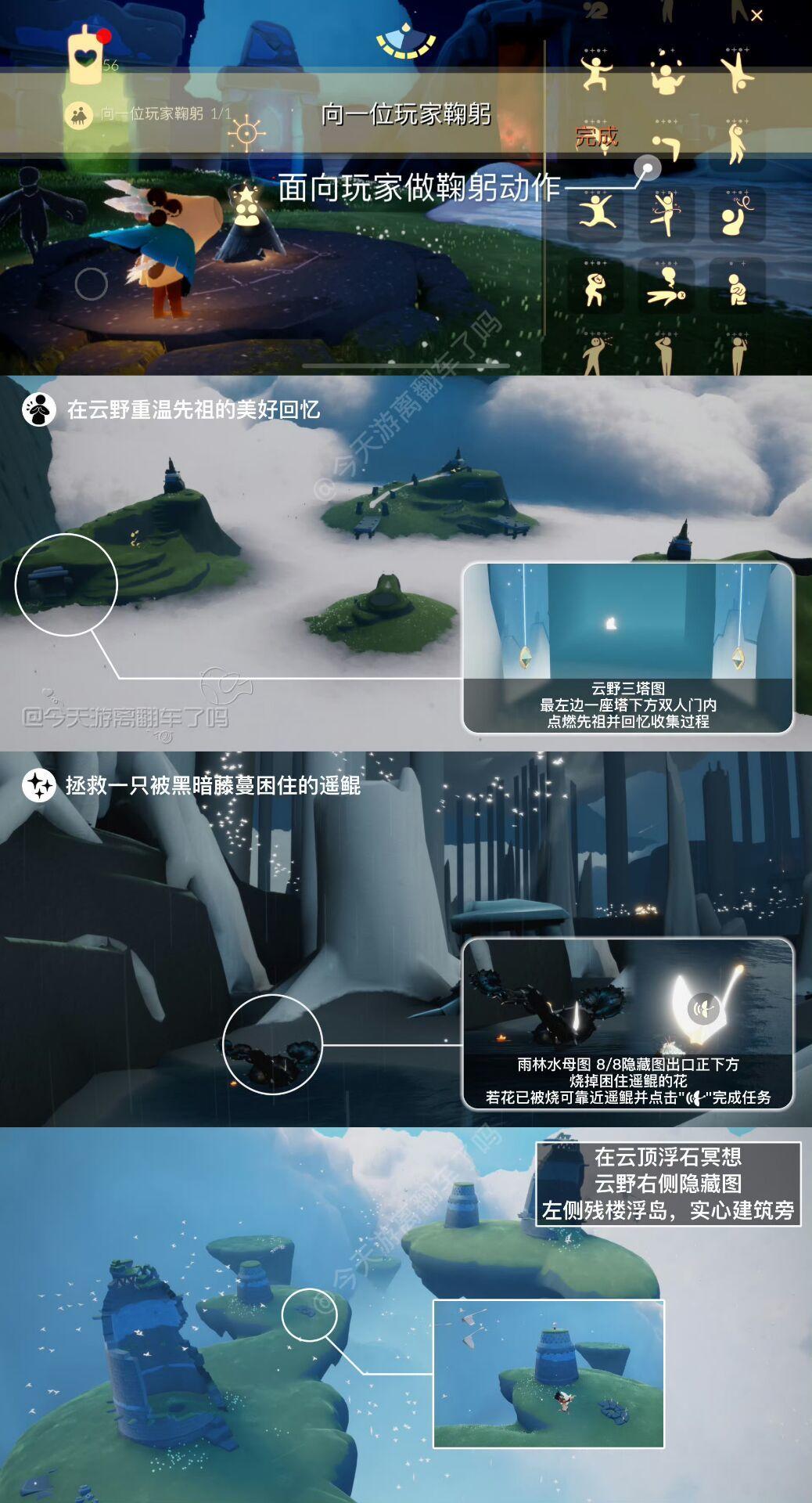 《光遇》游戏中每天的每日任务及大蜡烛的位置都不相同,玩家完成每日任务及收集大蜡烛都可以得到丰厚的兑换奖励,奖励可以用于兑换各种动作及道具,不过很多小伙伴不知道每日任务怎么做,又懒得自己去找大蜡烛的位置,我们汇总了每日任务的完成攻略以及蜡烛位置,一起来看看吧!