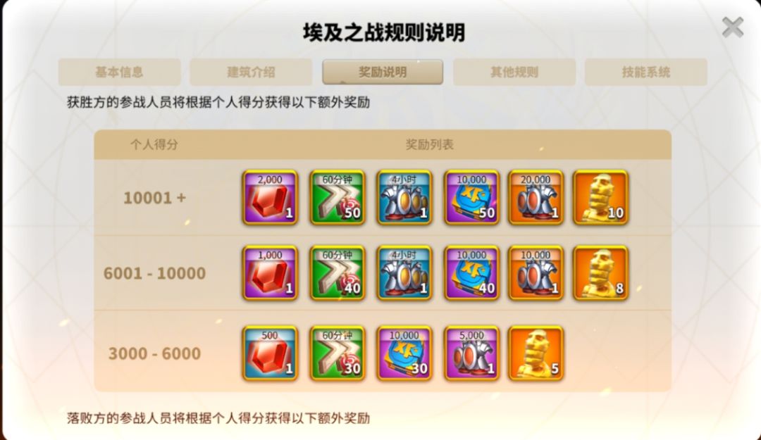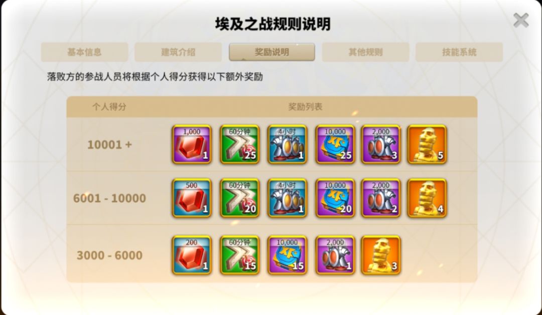 埃及之战是每两周一次的盛事,不仅可以享受竞赛的乐趣,奖励更加是丰厚无比,对于平民玩家来说,非常重要了。因此,要想获得丰厚奖励,准备工作非常重要。 附奖励图: