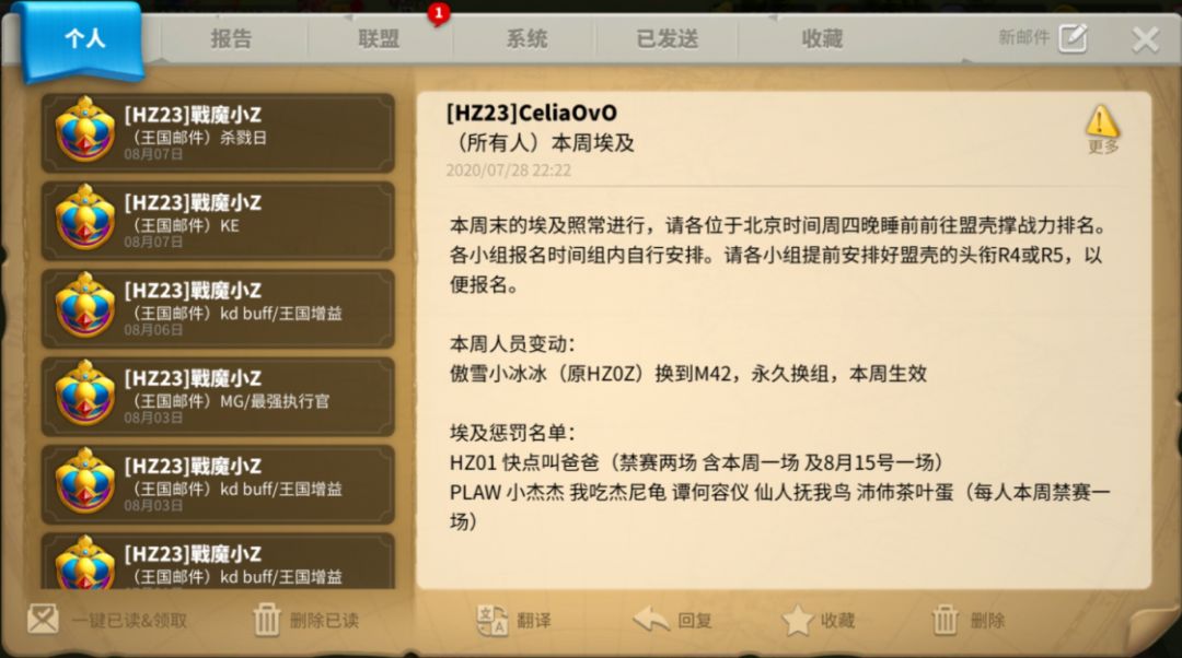 埃及报名完成后,不要随便修改报名结果(不包括埃及技能,只包括时间和参赛成员),会使报名结果全部清零,这个时候如果有人退盟的话,就必须喊他回来。
