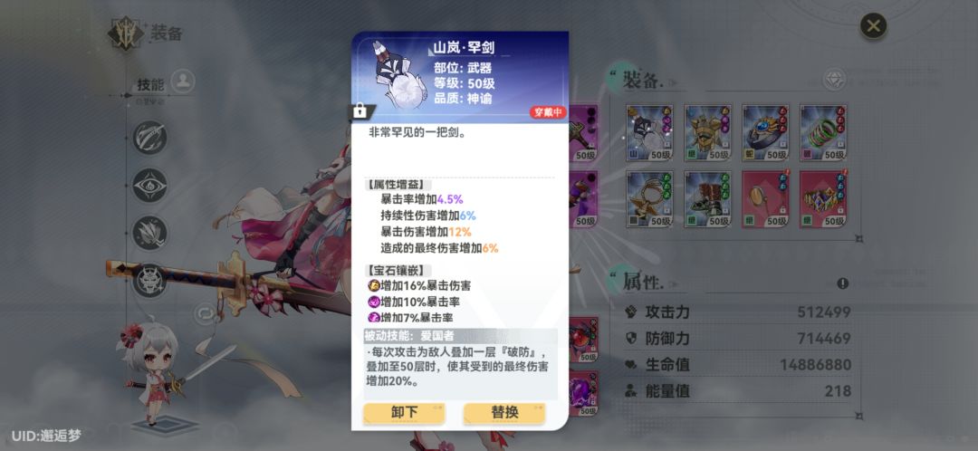 宝石:终极 爆发 燃烧 穿透 净化 咒缚(装备上的宝石仅有一个神谕品质的暴击宝石,还是因为手贱合成的)