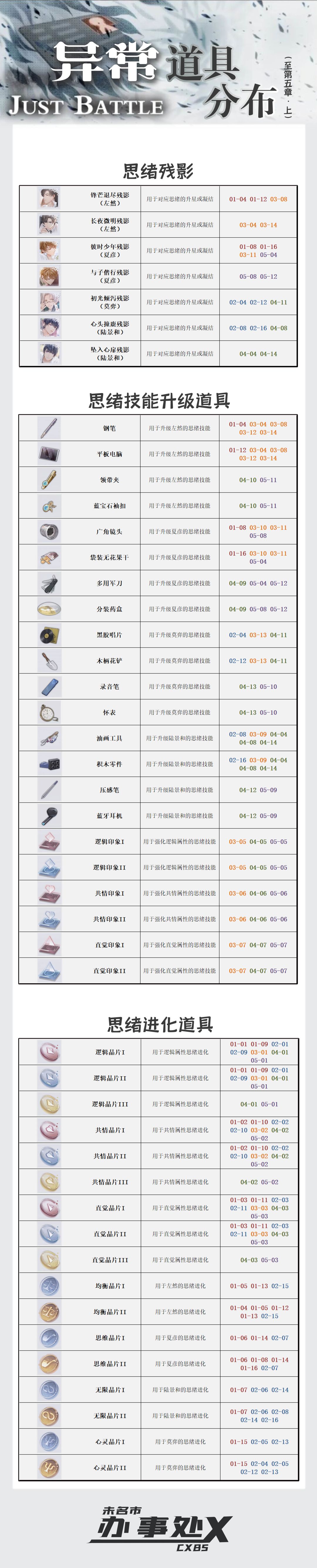 律政佳人们下午好,今天带来的是异常关卡的道具分布。(已更新至第五章)