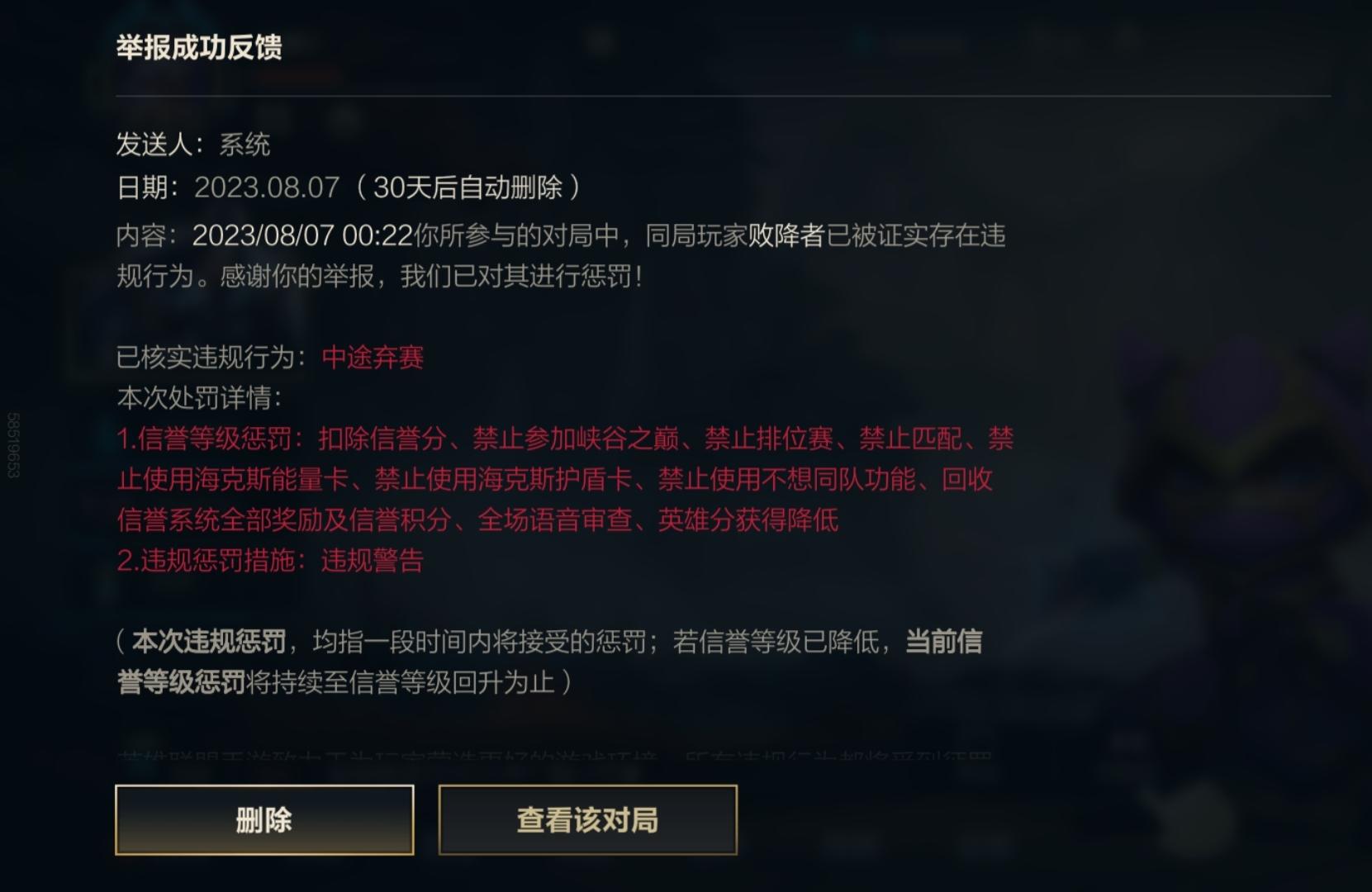 端游S3到现在十年了,从我初中到出社会工作,当初光抽皮肤就充了一万多,因为没时间上电脑,只能在上班闲暇玩两把手游,对手游是真失望,匹配机制氪金手段我都不在乎,我已经是大乱斗玩家了,但挂机这人信誉等级2级,处罚仅是警告,想当初端游,第一次警告,第二次就开始封号禁赛,信誉分能掉到2级我真不知道他挂机了多少次害了多少人,处罚力度不加重只会让这种现象恶性循环加速玩家流失,我先流失……