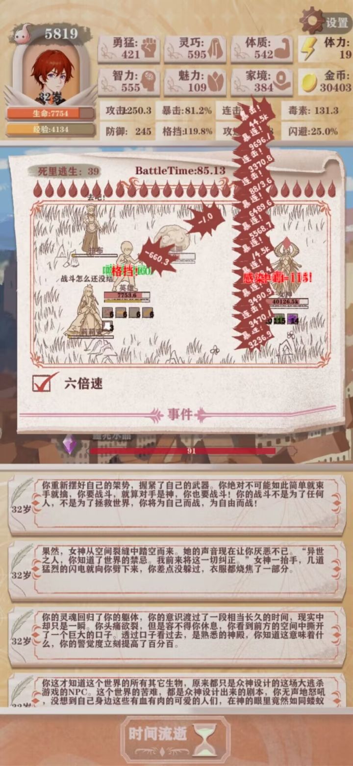 高回复+公主的buff,顶住女神攻击刮死她,耗费十几次死逃。