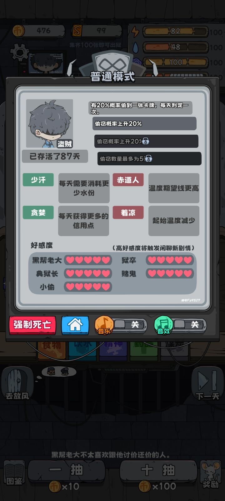 要积累满小偷与狱卒的五星好感度