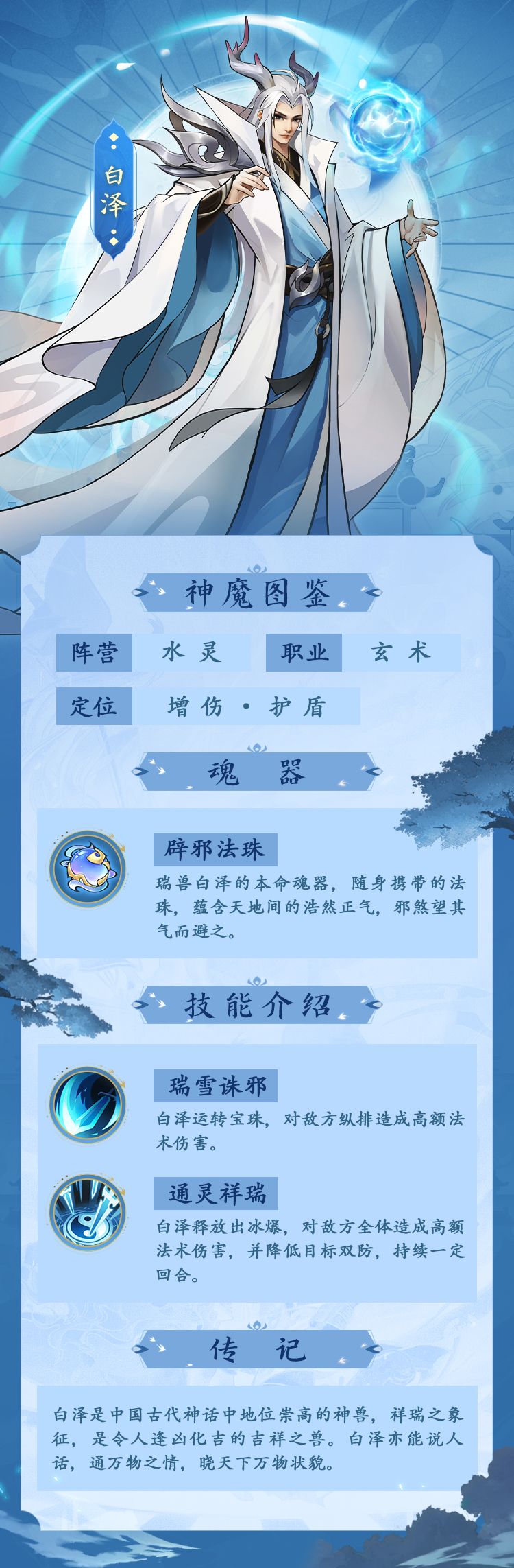在能够持续回血和回怒的环境下,白泽刷大招为己方套盾和增伤,走持续伤害的路线。(技能最终请以游戏上线后为准)