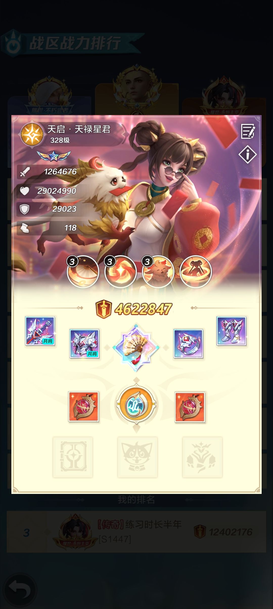 开区首次跨服碰见1449区,当时我们区最高战力就是我,进300万。