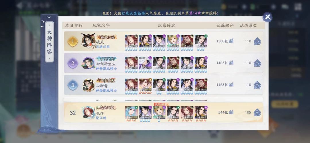 队伍组合基本固定,都是风雷+阴阳,不会配的可以参考大神阵容。