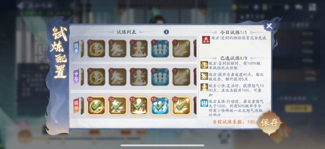 试炼系数是自己选择的,最高110,基本都可以选满。