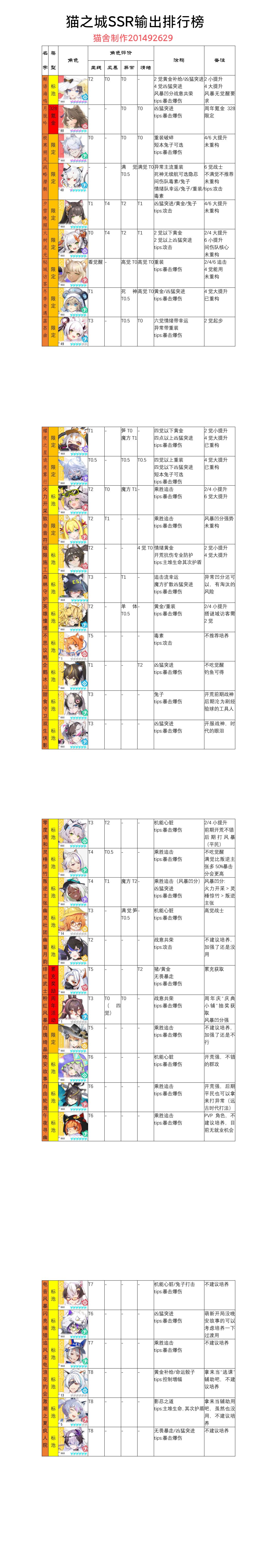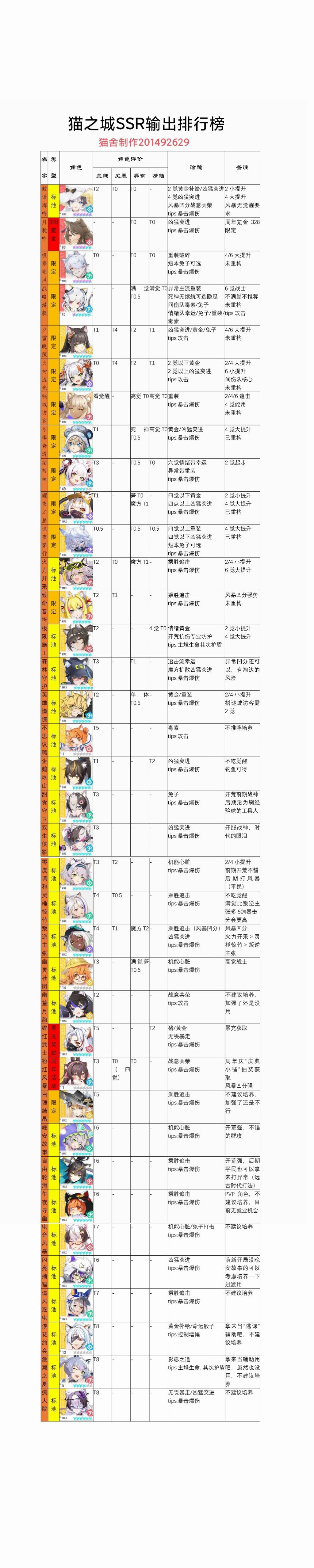 猫之城/SSR输出最新排行榜