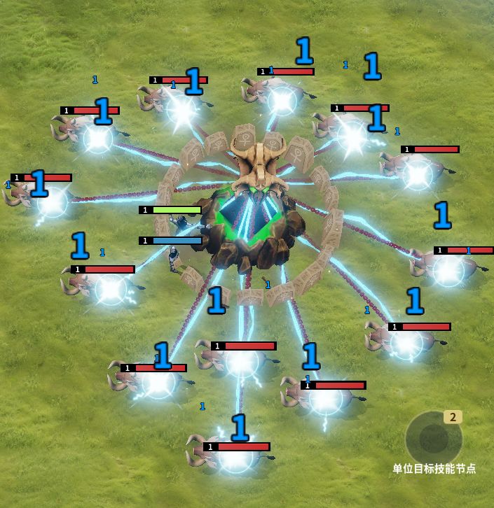 但是我们如果创建一个友方单位,如果让闪电从友方单位发出呢。可以看到闪电链的光束特效节点上并没有设置起点的地方,实际上,设置发射起点的结点在效果集合上。