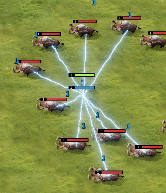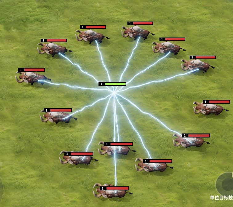 发射起点默认是在释放者身上的,如果我们直接搜素周围的单位,对他们造成伤害,则所有光束效果是从释放者身上发出,连接所有被伤害的单位的。如下图所示。