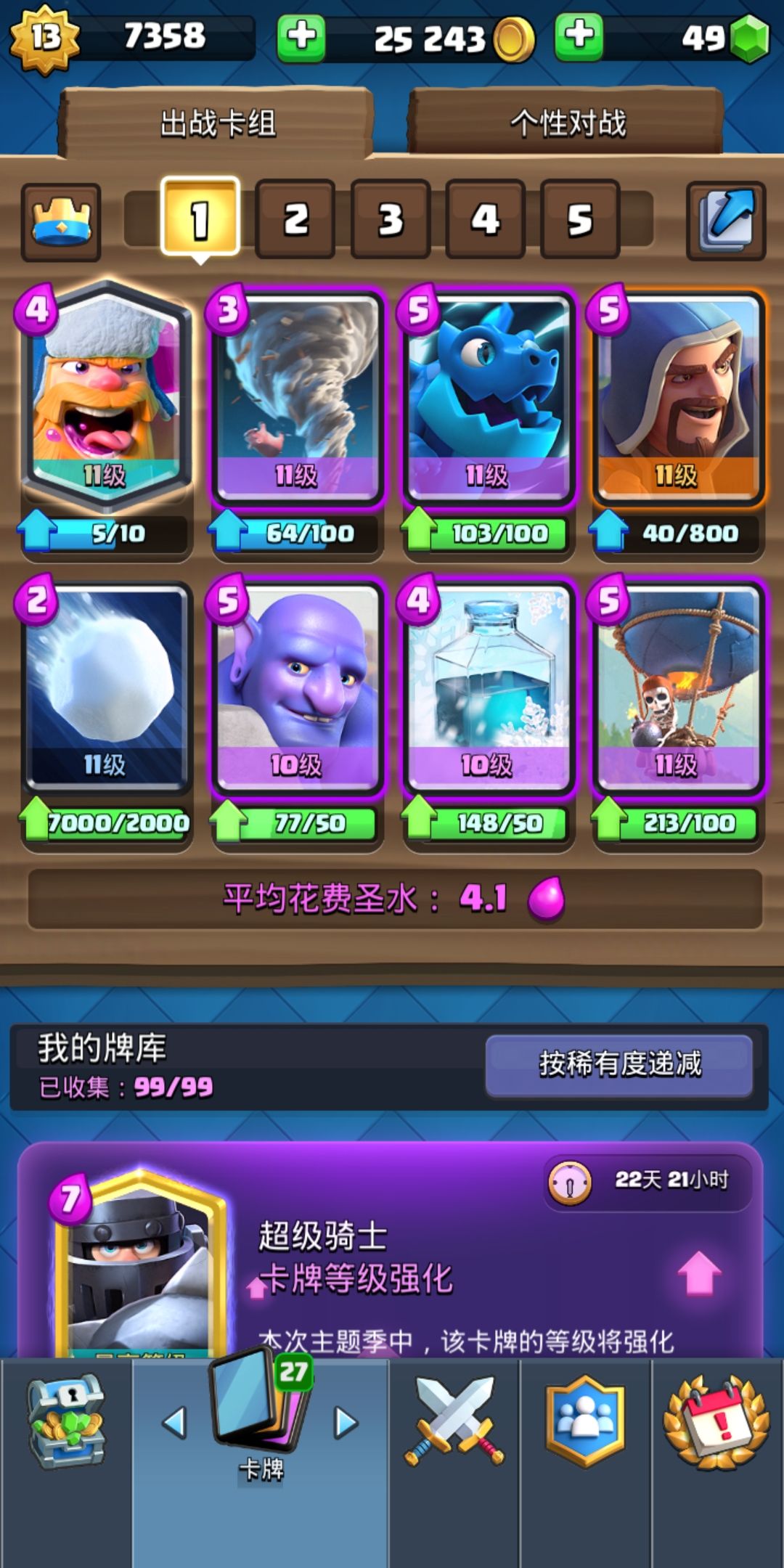 标准冰冻球中改了三张牌,青龙煤气龙换火法雷龙,原滚桶一点用没有,换了雪球