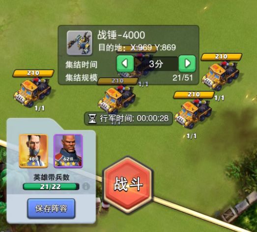 集结战锤的时候将时间调成3分钟,这样跟车的人越多,你的物质也就越多,但是要注意防止满兵跟车和中途跳车的人,满兵会分走你的物资,跳车会少一半的物资;