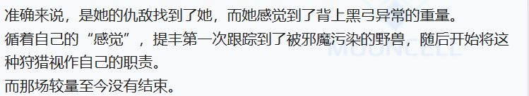 她的弓则是父母留下的遗物,自己的原石技艺和艾启尔的凋亡法术类似,能够抑制邪魔的污染,所以我猜测,这把黑弓可能是因为面对灾异时,提丰将自己地原石技艺赋予在这把弓上击退了灾异,但是灾异并不会轻易散去,就像变成寒灾的寒檀那样,灾异附在了她的弓上,也就变成了被污染的弓。