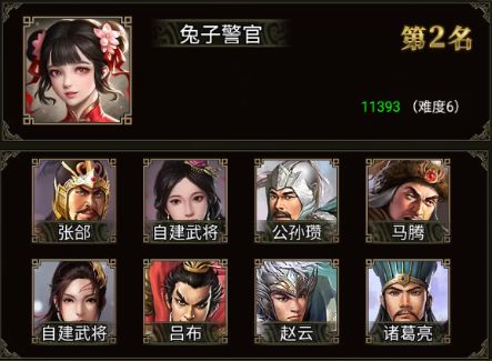 本次汉中之战中,乐乐乐乐乐 军团、兔子警官 军团、大建 军团、虎衛·南洺 军团、无当·飞军 军团、悟道者 军团 以 11393 的优异战功,达到目前汉中之战的最高分,拿下Top6,非常精彩